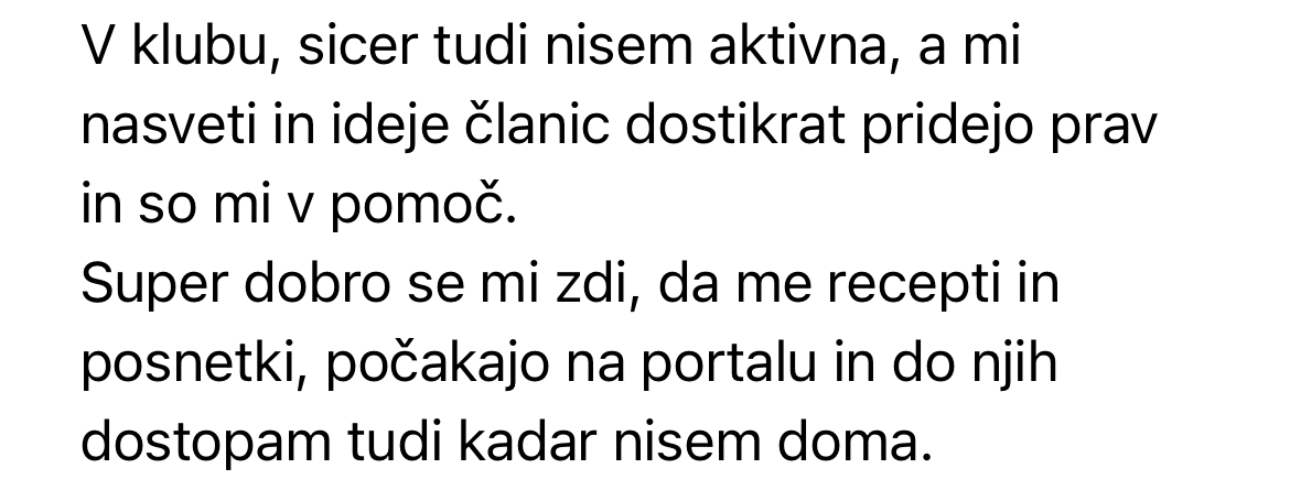 Največja vrednost kluba pa ni samo v receptih (čeprav se jih je do zdaj nabralo že kar veliko), ampak je največ vredno to, da ti ni treba vsega sami.